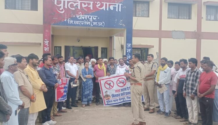 चैनपुर थाना प्रभारी गेहलोद सेमरिया दुवारा अपने वरिष्ठ अधिकारियों एसडिओपी राकेश आर्य भीकनगांव तहसीदार के निर्देश पर पुरे मध्यप्रदेश में पद्रह दिनों तक नशा न करने को लेकर अभियान चलाकर कर लोगों को जागरूक किया जा रहा है और शपथ भी दिलाई जा रहीं इसी को लेकर खरगोन जिला पुलिस अधीक्षक धर्मराज मिणा व अतिरिक्त पुलिस अधीक्षक शंकुनतला रूहल के निर्देश पर चैनपुर थाना प्रभारी गेहलोद सेमरलिया द्रारा भीकनगांव एसडिओपी राकेश आर्य व तहसीदार के निर्देश पर चैनपुर थाना क्षेत्र में थाना प्रभारी गेहलोद सेमलिया दुवारा नशे के विरुद्ध जागरूकता अभियान चलाकर कर लोगों को जागरूक किया जा रहा था