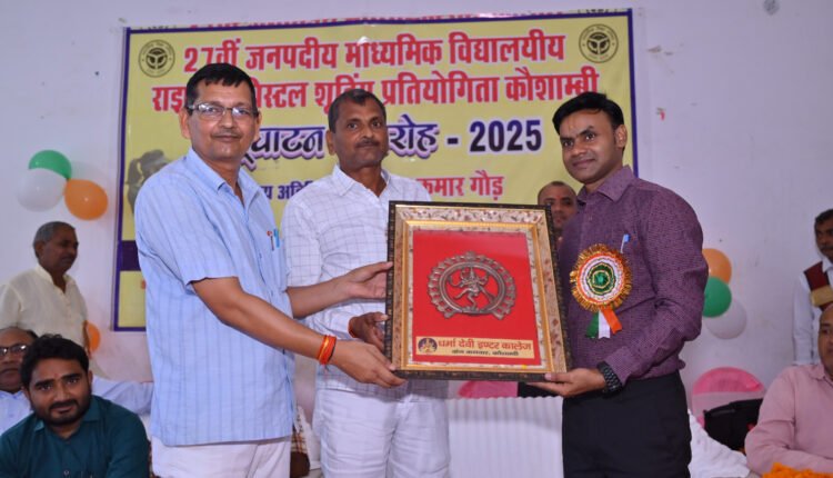 *कौशांबी* धर्मा देवी इण्टर कॉलेज में 27वीं जनपदीय राइफल/पिस्टल शूटिंग प्रतियोगिता का आयोजन शुक्रवार को किया गया जिसका उद्घाटन मुख्य अतिथि उपजिलाधिकारी सिराथू योगेश कुमार गौड़ ने मां शारदे की प्रतिमा पर दीप प्रज्वलित व माल्यार्पण करते हुए शूटिंग रेंज का फीता काट कर किया।आयोजित हुई इस प्रतियोगिता में जनपद के विभिन्न विद्यालयों के अनेकों छात्र छात्राओं ने प्रतिभाग किया, जिसमें ओपन साइड राइफल अंडर 14 बालिका वर्ग में मनीषा देवी(धर्मा देवी) को प्रथम स्थान, प्राची यादव(धर्मा देवी) को द्वितीय स्थान, अंशिका प्रजापति(धर्मा देवी) को तृतीय स्थान; अंडर 17 में चित्रा को प्रथम स्थान, वैष्णवी को द्वितीय स्थान, पलक जायसवाल(धर्मा देवी) को तृतीय स्थान; अंडर 19 में रेशमा देवी(धर्मा देवी) प्रथम स्थान, यशमीन बानो(धर्मा देवी) द्वितीय स्थान, मधु देवी(धर्मा देवी) को तृतीय स्थान प्राप्त हुआ।पीप साइड राइफल अंडर 14 में सलोनी प्रथम स्थान व अनुष्का तिवारी(डीडी कॉन्वेंट) द्वितीय स्थान प्राप्त हुआ, अंडर 17 में साइस्ता परवीन को प्रथम स्थान; अंडर 19 में आरुशी सक्सेना को प्रथम स्थान, सानिया परवीन को द्वितीय स्थान प्राप्त हुआ। पिस्टल शूटिंग अंडर 14 बालिका वर्ग में सोनाक्षी(धर्मा देवी) प्रथम स्थान, पुष्पांजलि(धर्मा देवी) द्वितीय स्थान, तनु चौरसिया(धर्मा देवी) तृतीय स्थान; अंडर 19 में अंजलि देवी(प्रथम स्थान), काजल देवी(धर्मा देवी) द्वितीय स्थान, आस्था सिंह(धर्मा देवी) तृतीय स्थान प्राप्त हुआ।