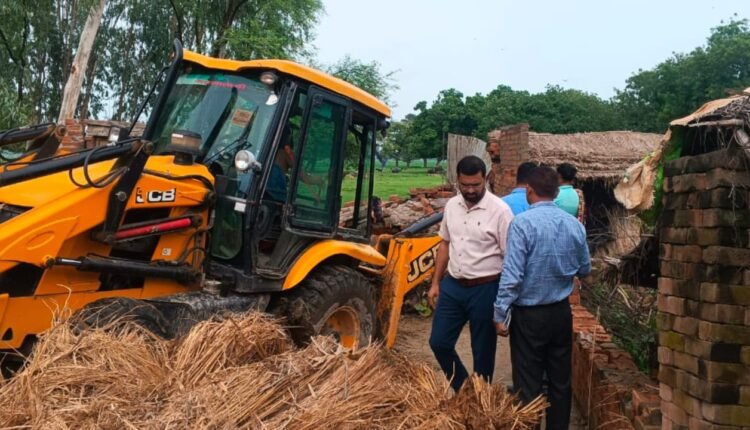नायब तहसीलदार मोबिन अहमद के नेतृत्व में अवैध कब्जे की बंजर भूमि पर चला बुलडोजर
