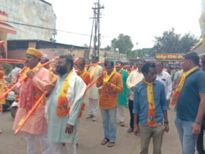 खरगोन शहर में देश-प्रदेश में सुख-समृद्धि, शांति, खुशहाली, विश्व के कल्याण व निमाड़ अंचल में अच्छी बारिश की कामना के साथ निरंतर तृतीय वर्ष में निकली पत्रकार एकता कावड़ यात्रा में नगर के समस्त पत्रकार बंधु शामिल हुए। सर्वधर्म समभाव का उदाहरण बनी कावड़ यात्रा का अनेक स्थानों पर पुष्पवर्षा व सेवा स्टॉल के माध्यम से भव्य स्वागत हुआ। सोमवार सुबह 10 बजे भगवान श्री सिद्धनाथ महादेव जी की पूजा-अर्चना, अभिषेक कर व कावड़ में गंगा जल भरकर पत्रकारों ने प्रस्थान किया। भोले-शंभू, भोलेनाथ… हर-हर महादेव के जयकारों से कावड़ यात्रा मार्ग गूंज उठा। कावड़ यात्रा दोपहर करीब 1ः30 बजे नगर के प्रमुख मार्गों से होकर श्री मेलडेरेश्वर महादेव मंदिर पहुंची। भगवान श्री मेलडेरेश्वर महादेव की पूजा-अर्चना, गंगा जल से अभिषेक व आरती की गई। एनवीडीए रेस्ट हाउस पर भोजन प्रसादी पश्चात पश्चात कावड़ यात्रा का समापन हुआ।