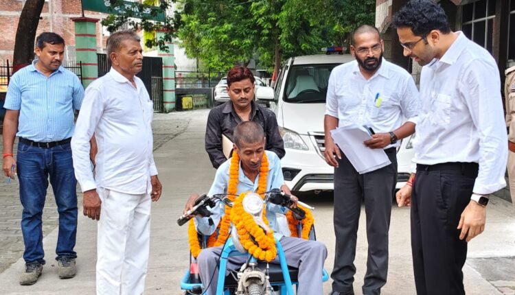 जिलाधिकारी ने दिव्यांग शिवबाबू गुप्ता को मोटराइज्ड ट्राईसाईकिल प्रदान किया। उन्होंने जिला दिव्यांगजन सशक्तिकरण अधिकारी राकेश वर्मा को निर्देशित किया कि संबंधित अधिकारियों से समन्वय कर दिव्यांग शिवबाबू को सोलर लाइट एवं राशन कार्ड सहित आदि जनकल्याणकारी योजनाओं से लाभान्वित किया जाय।