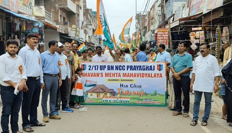 कौशाम्बी: भरवारी स्थित भवन्स मेहता महाविद्यालय के छात्र-छात्राओं की ओर से भरवारी में शानदार तिरंगा रैली निकाली गई। इस रैली में हाथों में तिरंगा लिए नेशनल कैडेट कोर, रोवर्स-रेंजर्स, राष्ट्रीय सेवा योजना के स्वयंसेवकों के साथ ही महाविद्यालय के सामान्य छात्र-छात्राएं सम्मिलित हुए जिनका नेतृत्व प्राचार्य प्रोफेसर प्रबोध श्रीवास्तव और कार्यक्रम संयोजिका प्रोफेसर श्वेता के साथ अन्य सभी शिक्षकगण कर रहे थे।