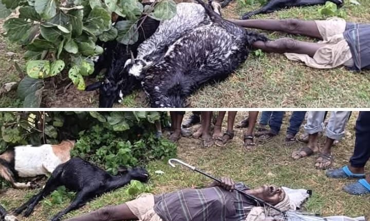 आकाशीय बिजली के चपेट में आने से 7 बकरियों सहित युवक की मृत्यु।