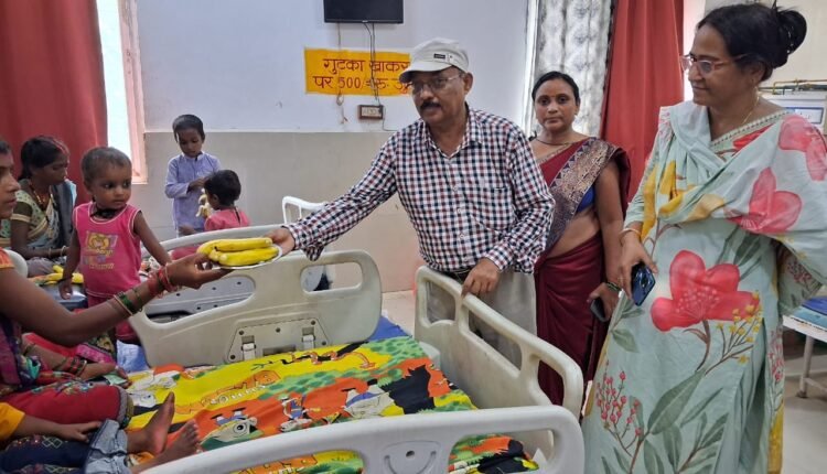 पोषण पुनर्वास केंद्र में भर्ती बच्चों को फल किया वितरित