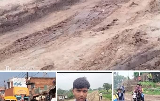 संविदाकार तीन वर्षों से मिट्टी की उलटी पलटी कर परोस रहा छात्र-छात्राओं एवं राहगीरों परेशानी।