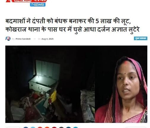 बदमाशों ने करीब आधे घंटे तक घर को खंगाला। आलमारी व बॉक्स में रखे करीब 90 हजार रुपये नकद, सोने-चांदी के जेवर व नए कपड़े सहित करीब पांच लाख रुपये का सामान लूट ले गए। बदमाशों के जाने के बाद दहशतजदा मनीष ने पास-पड़ोस के लोगों को फोन पर घटना की जानकारी दी। सूचना पर पहुंचे कोखराज थाना प्रभारी चंद्रभूषण ने घटनास्थल का निरीक्षण किया। कुछ देर बाद पहुंचे एएसपी राजेश कुमार सिंह भी मौके पहुंचे। उन्होंने निरीक्षण के बाद मनीष और उनके परिजनों से पूछताछ कर घटना का शीघ्र खुलासा करने का आश्वासन था l