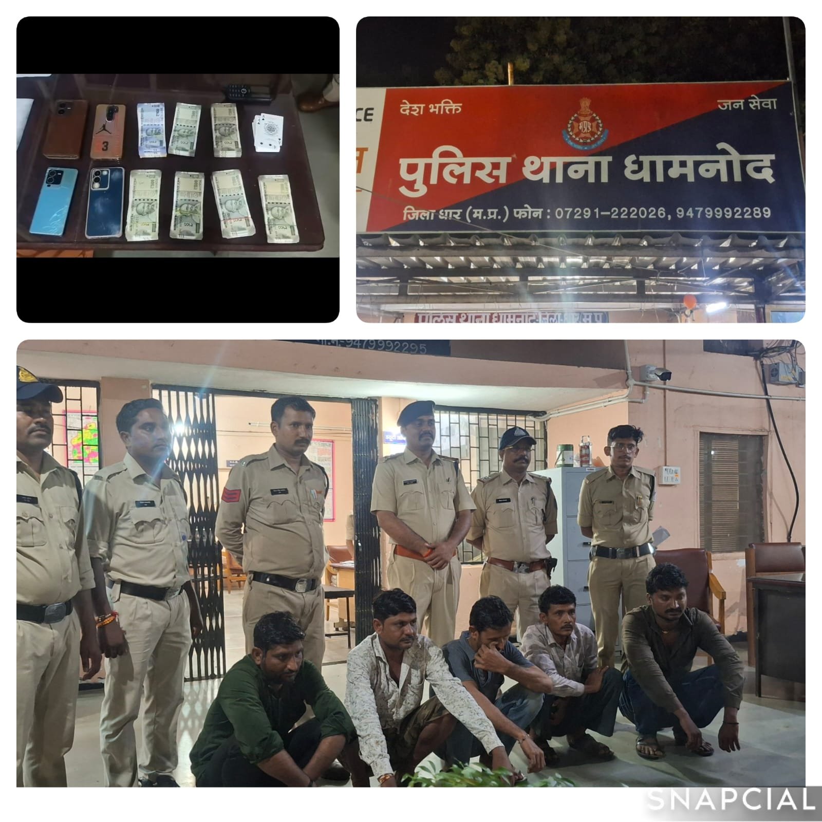 धामनोद पुलिस की बड़ी कार्रवाई जुआ खेलते 05 आरोपी गिरफ्तार