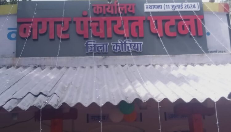 कोरिया जिले के बैकुंठपुर के अंतर्गत आने वाला नव गठित नगर पंचायत पटना के मुख्य नगर पालिकाअधिकार सिकंदर सिद्दार को उनके तानाशाह रवैये के कारण कलेक्टर कोरिया ने उन्हें हटाकर नगर पंचायत पटना के लिए न्याय संगत प्रदान किया है इससे कलेक्टर कोरिया के लिए लोगों की दिलों में और भी जगह बन गई है आपको बता दें कि नगर पंचायत पटना में जब से सिकंदर सिद्धार्थ को नियुक्त किया गया था तभी से वह विवादों में रहे हैं सच पूछिए तो आज नगर पंचायत पटना ने राहत की सांस लिया है उनके स्थान पर डिप्टि कलेक्टर अंशुल वर्मा को नियुक्त किया गयाहै! जो की बहुत ही कर्मठ और मिलनसार हैं जब से पटना नगर वासियों को पता चला है की कोरिया डिप्टी कलेक्टर अंशुल वर्मा यहां के मुख्य नगर पालिका अधिकारी नियुक्त किए गए हैं तभी से लोगों में हर्ष व्याप्त है उनसे काफी उम्मीदें है लोगों का यह अभी कहना है कि विकाश को निःसंदेह गति मिलेगी ।