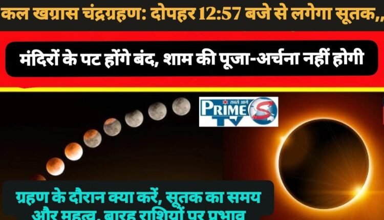 कल खग्रास चंद्रग्रहण: दोपहर 12:57 बजे से लगेगा सूतक, मंदिरों के पट होंगे बंद, शाम की पूजा-अर्चना नहीं होगी
