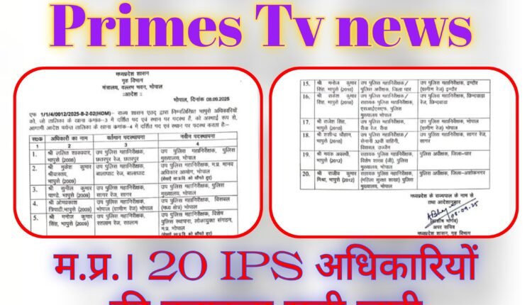 म.प्र.। 20 IPS अधिकारियों की तबादला सूची जारी देखिए खबर::धार अशोक नगर के बदले एसपी भोपालमुख्य समाचार By Prime Sandesh Last updated Sep 8, 2025 0 707 Share *म.प्र.। 20 IPS अधिकारियों की तबादला सूची जारी,* देखिए खबर::धार अशोक नगर के बदले एसपी देखिए आदेश Join Primes Tv WhatsApp Group / Channel: +918109571743 0 707 Share