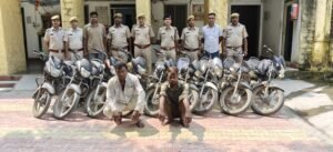 फोटो – बाईक चोरी के आरोपी पुलिस दल के कब्जे में बरामद बाईको के साथ