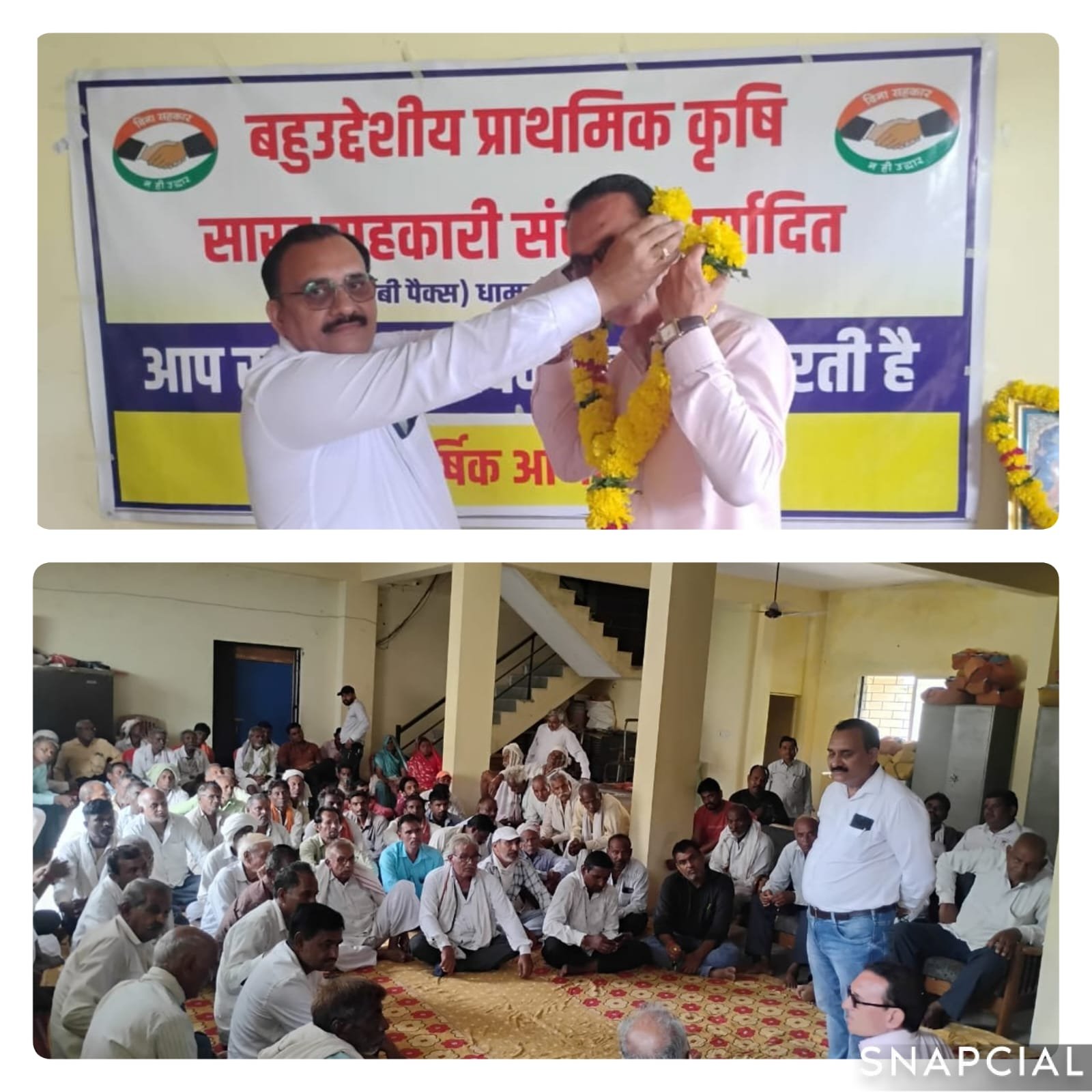 धामनोद,, बहुउद्देशीय साख सहकारी समिति मर्यादित धामनोद ( गुलझरा ) कि 59 वार्षिक आमसभा का आयोजन जिला सहकारी केन्द्रिय बैंक धार शाखा धामनोद के हाल परिसर मै किया गया l सस्था प्रबंधक श्री भूपतसिंह चौहान द्वारा सभा कि अध्यक्षता के लिए धरमपुरी तहसील के किसान संघ के अध्यक्ष श्री दिनेश पटेल को अध्यक्ष नियुक्त किया गया l कार्यक्रम की शुरुआत दीप प्रज्वलित कर सरस्वती पूजन के पश्चात सस्था के कर्मचारियों द्वारा आम सभा के अध्यक्ष व किसानों का स्वागत कर आम सभा के एजेंडे में उल्लेखित बिंदुओं का क्रमबद्ध तरीके से वाचन करते हुऐ सस्था का वार्षिक आय व्यय पत्रक, लाभ हानि पत्रक पर विस्तार पूर्वक जानकारी पढ़कर सुनाई गई उसके पश्चात आम सभा के अध्यक्ष महोदय द्वारा अन्य विषय पर किसानों के साथ रासायनिक खाद की कमी वह उपलब्धता एवं संस्था की जमीन ( पूर्व पोस्टमाडम रूम ) पर वॉल बाउंड्री करने पर विस्तृत चर्चा हुई साथ ही नवाचार के तहत सहकारी सुपर बाजार जिसे सस्था द्वारा दीपावली तक शुरुआत करने की बात कही गई जिसकी विस्तार पूर्वक जानकारी गुजरी समिति के प्रबंधक श्री राजेश पारीखजी द्वारा दी गई l आज की आम सभा के समापन के लिए अध्यक्ष महोदय कि अनुमति से सभा समापन किया गया अंत मे सस्था प्रबंधक द्वारा आमसभा में पधारे किसानों व अतिथियों का आभार व्यक्त किया गया l सस्था के कर्मचारी दीपेंद्र महंत, प्रदीप स्वामी, प्रीतेश वर्मा, मनीष यादव, राधेश्याम जायसवाल, मोहित रावत रमेश केवट, मोहन यादव उपस्थित रहे