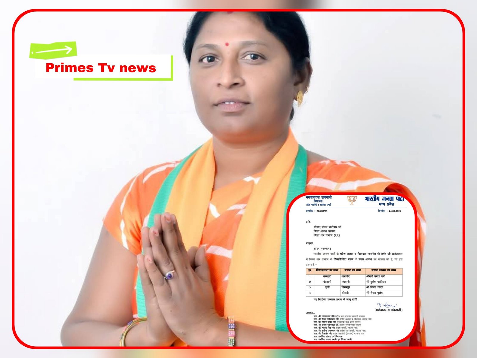 श्रीमती ममता वर्मा को धामनोद मंडल अध्यक्ष बनने पर हार्दिक बधाई