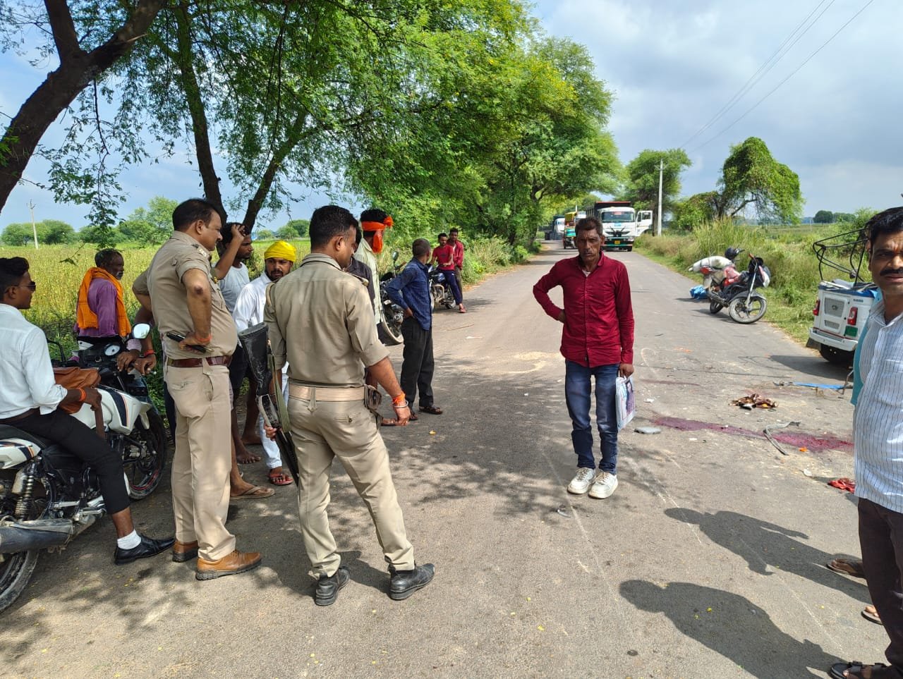 *लोडर पिकअप वाहन घटना स्थल से फरार मौके पर भारी पुलिस फोर्स के साथ पहुंचे पुलिस अधिकारी*