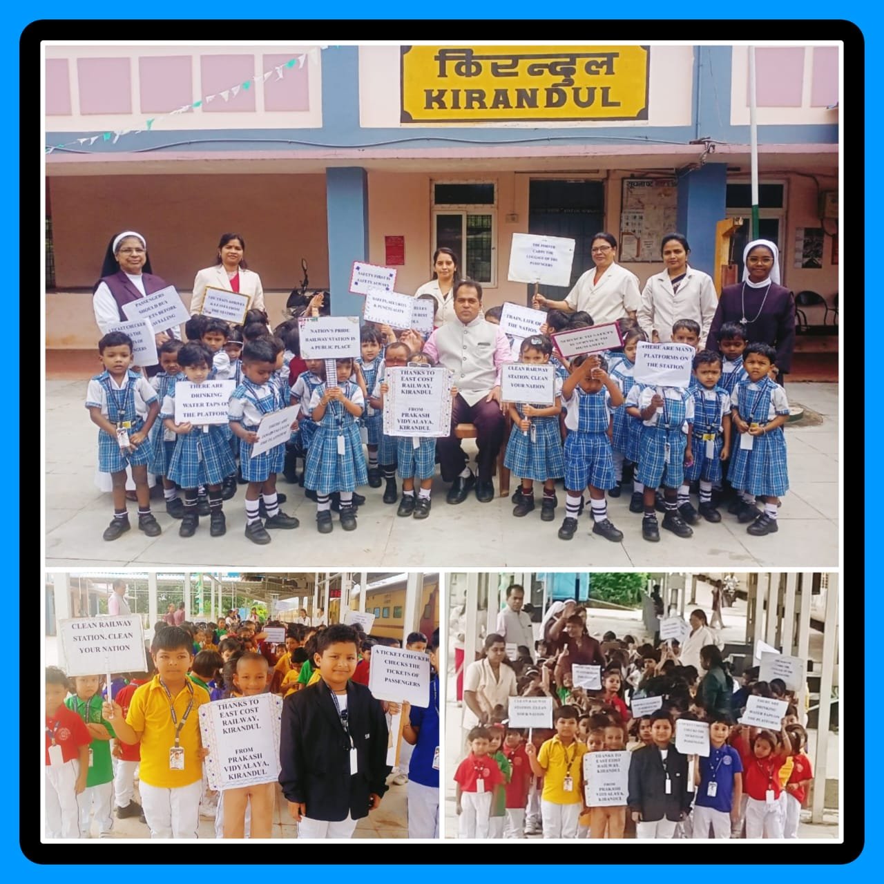 सामान्य ज्ञान बढ़ाने प्रकाश विद्यालय ने के.जी. के बच्चों को कराया रेलवे स्टेशन की सैर