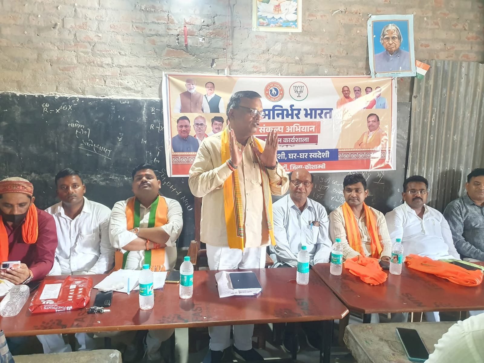 मुख्यातिथ जिलाध्यक्ष धर्मराज मौर्य ने संबोधित करते हुए बताया कि आत्मनिर्भरता के माध्यम से आर्थिक विकास को बढ़ावा देना व स्थानीय उद्योगों और व्यवसायों में रोजगार के अवसर प्रदान करना है यदि देश अपनी आवश्यकताओं के अनुरूप छोटे बड़े सभी उत्पादों का देशांतगर्त ही उपार्जन एवं निर्णय करने लगे तो विश्व की कोई भी शक्ति देश को आगे बढ़ने से रोक नहीं सकेगी कोरोना महामारी से उत्पन्न विवशता और आर्थिक तनाव को दूर करने के लिए ही प्रधानमंत्री नरेंद्र मोदी ने 12 मई 2020 को राष्ट्र को संबोधित करते हुए आत्मनिर्भर भारत अभियान प्रारम्भ करने की घोषणा की ऐसी तमाम बातों को विस्तार से बताया इस मौके पर मण्डल अध्यक्ष सिराथू विनय पाण्डेय,मण्डल अध्यक्ष अजुहा प्रशान्त केसरवानी,ब्लॉक प्रमुख प्रतिनिधि सिराथू लवकुश मौर्य,हीरा लाल सरोज,विपिन यादव सहित सम्मानित मण्डल पदाधिकारीगण उपस्थित रहें।