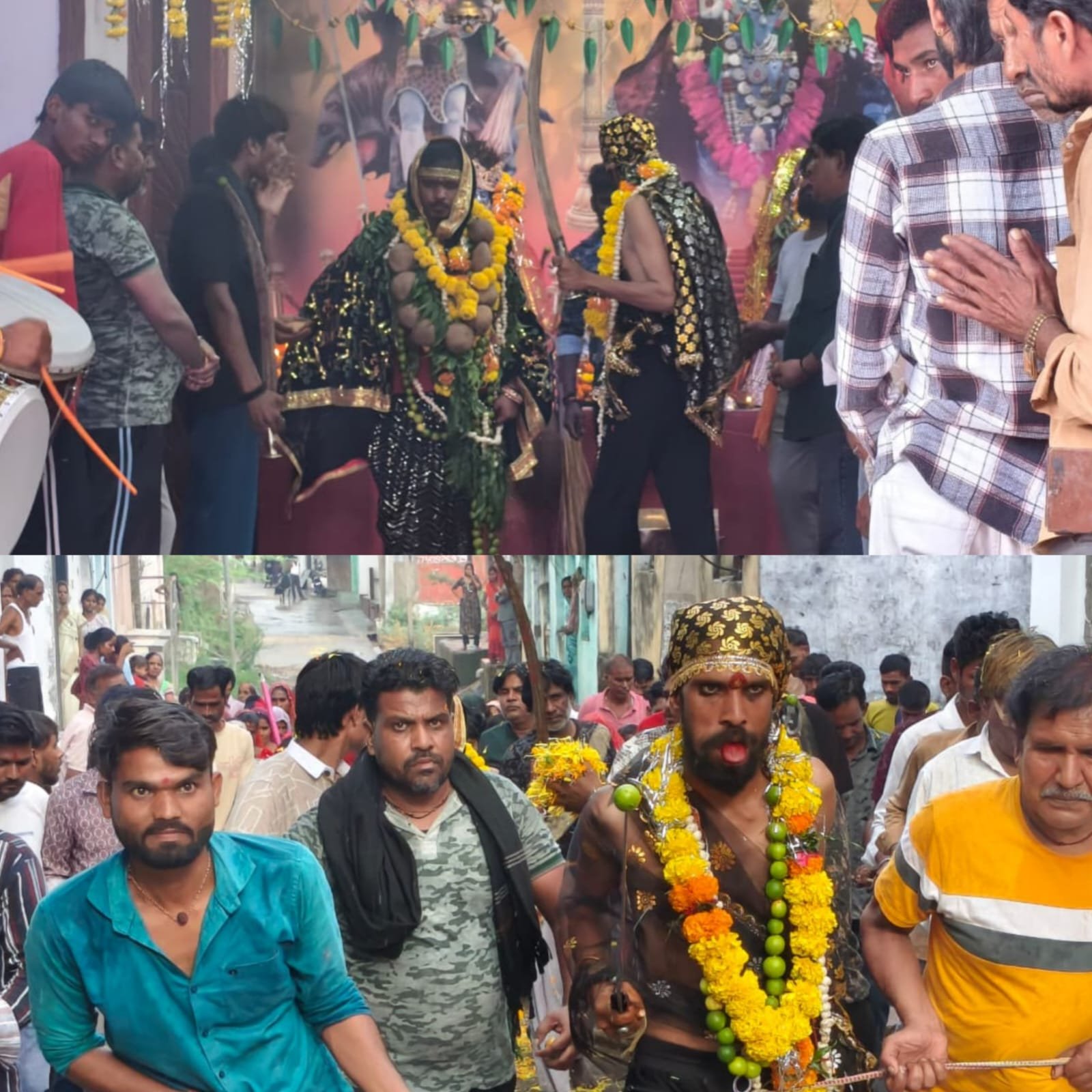 फोटो : माता के स्वरूप द्वारा हाथों में जलता हुआ खप्पर लिए यात्रा में।