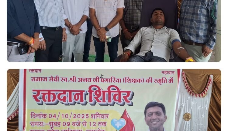धामनोद में सहज एवं सरल हृदय और सेवा भावी पुण्यआत्मा स्व. अजय पगारिया की स्मृति में रक्तदान शिविर, 52 यूनिट रक्त संकलित