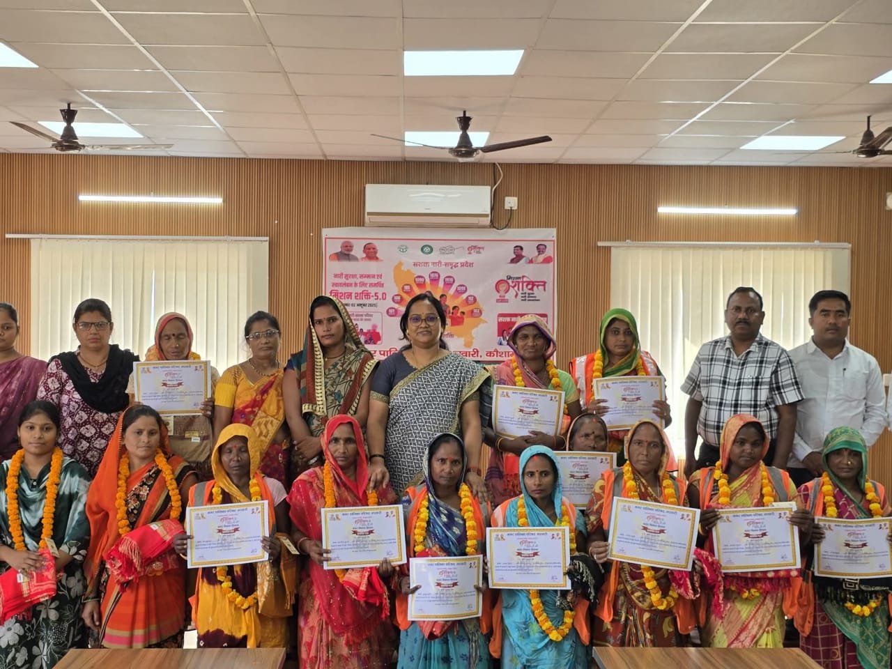 कौशाम्बी/भरवारी: महिलाओं को आत्मनिर्भर और सशक्त बनाने के लिए चलाए जा रहे मिशन शक्ति कार्यक्रम के तहत आंबेडकर भवन’ में शनिवार को नगर अध्यक्ष कविता पासी, अधिशासी अधिकारी रामसिंह ने महिला सफाईकर्मियों का सम्मान किया गया।