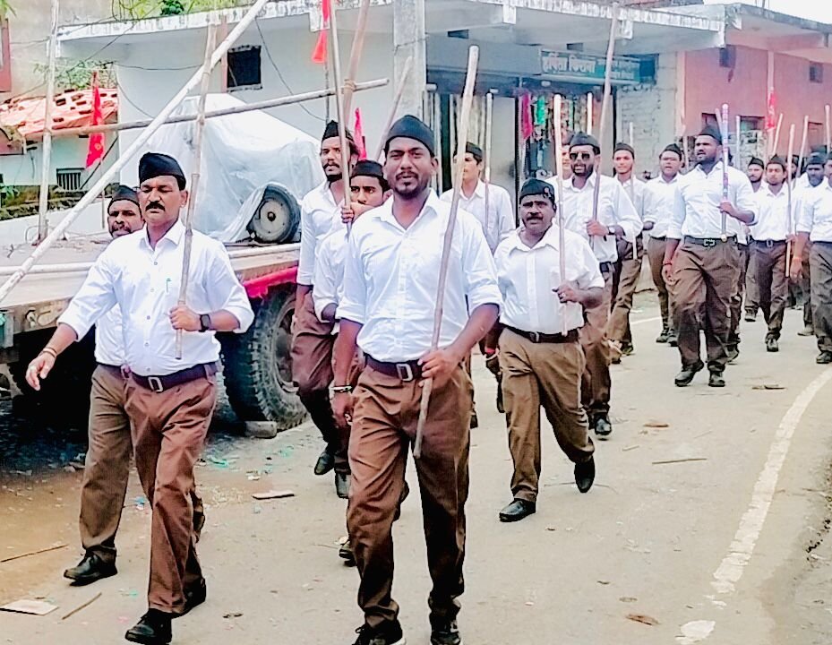 घोड़ाडोंगरी नगर में (आर एस एस ) का पथ संचलन, सैकड़ों की संख्या में शामिल हुए स्वयंसेवक ।