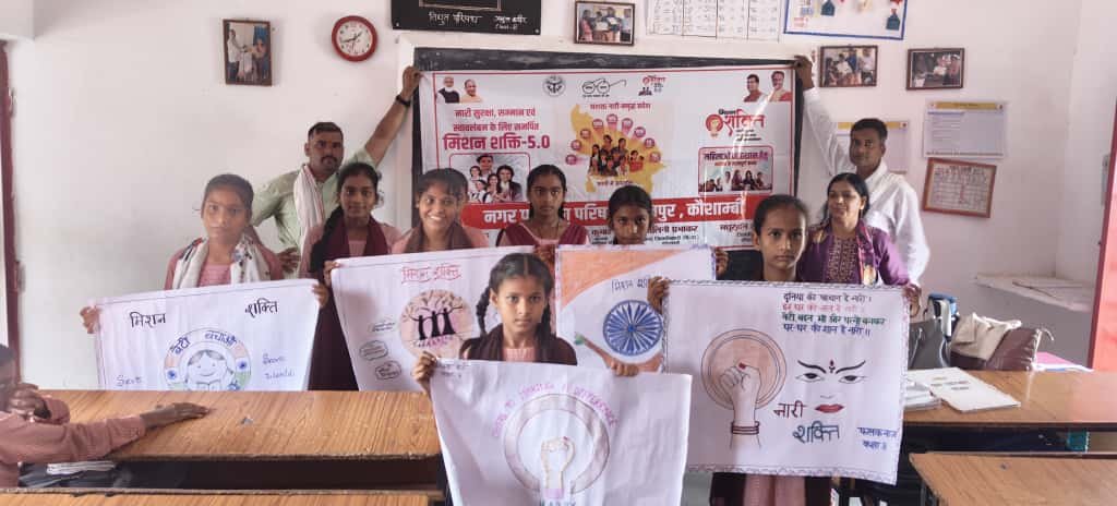 कौशाम्बी: मिशन शक्ति अभियान के अंतर्गत नगर पालिका परिषद,मंझनपुर द्वारा आज उच्च प्राथमिक विद्यालय, मंझनपुर में पोस्टर प्रतियोगिता का आयोजन किया गया।