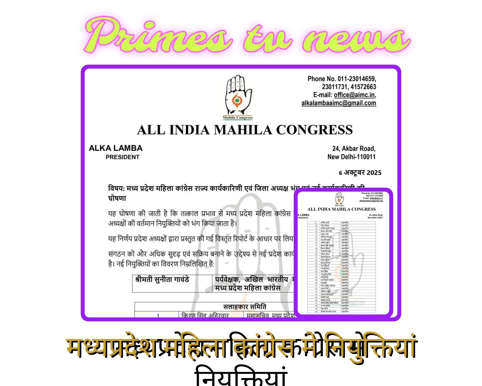 मध्यप्रदेश महिला कांग्रेस में बड़ा संगठनात्मक फेरबदल