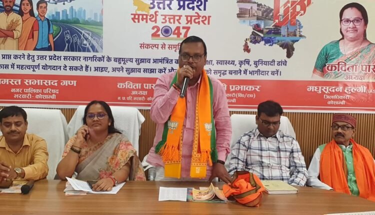 कौशाम्बी: नगर पालिका परिषद भरवारी कार्यालय में आयोजित विकसित भारत का संकल्प व विकसित उत्तर प्रदेश समर्थ उत्तर प्रदेश 2047 सुझाव कार्यक्रम को बतौर मुख्यातिथ जिलाध्यक्ष धर्मराज मौर्य ने संबोधित किया।