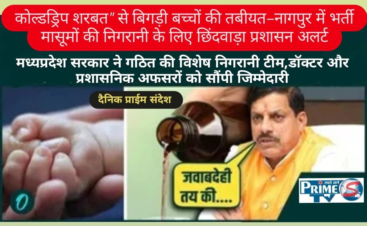 कोल्डड्रिप शरबत” से बिगड़ी बच्चों की तबीयत–नागपुर में भर्ती मासूमों की निगरानी के लिए छिंदवाड़ा प्रशासन अलर्ट