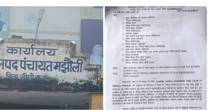 अतिरिक्त मुख्य कार्यपालन अधिकारी जिला पंचायत सीधी व प्रभारी मुख्य कार्यपालन अधिकारी जनपद पंचायत मझौली ने जानकारी देते हुए बताया है कि कार्यालय कलेक्टर (सामाजिक न्याय) जिला सीधी के पत्र क्रमांक है 551 वर्ष 2025–26 दिनांक 22/9/2025 के परिपालन मे 0 से 18 वर्ष तक के बच्चों का परीक्षण कर दिव्यांग प्रमाण पत्र बनाए जाने हेतु चिन्हांकन शिविर का आयोजन 11 अक्टूबर 2025 दिन शनिवार को मझौली जनपद पंचायत प्रांगण में किया जा रहा है। जिसके लिए 6 विभागों को अलग-अलग जिम्मेदारी सैपी गई है।