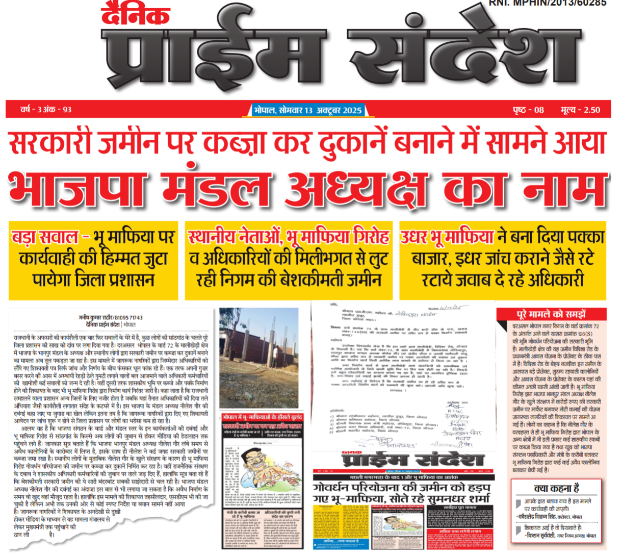 A shocking case from Bhopal’s Ward 72 exposes BJP Bhanupr Mandal President Nilesh Gaur for allegedly encroaching on government land and building illegal shops. Locals allege involvement of land mafia and administrative negligence.