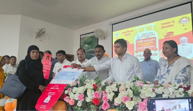 योजनान्तर्गत दीपावली व होली पर निःशुल्क गैस सिलेण्डर रिफिल की सुविधा पात्र लाभार्थियों को प्रदान की गयी, जिसमें प्रथम चरण (अक्टूबर से दिसम्बर 2025) दीपावली पर आधार प्रमाणित पात्र परिवारों को गैस सिलेंण्डर रिफिल सब्सिडी अंतरित की जा रही है। कार्यक्रम में लाभार्थिंयों को अवगत कराया गया कि दीपावली त्योहार के शुभ अवसर पर रिफिल बुक कराने पर पात्र परिवारों को प्रति रिफिल राज्य सरकार द्वारा 559.58 रू० की सब्सिडी प्रधानमंत्री उज्ज्वला योजनान्तर्गत अनुमन्य है, जो कि उज्ज्वला योजना के लाभार्थी के खाते में अंतरित की जायेगी। सब्सिडी की धनराशि उन्हीं लाभार्थिंयों को प्राप्त होगी, जिनके बैंक खाते आधार से लिंक होंगे तथा जिनकी केवाईसी के माध्यम से आधार प्रमाणीकृत होंगे। जनपद में 5,84,421 परिवार उज्ज्वला योजना के लाभार्थी है।