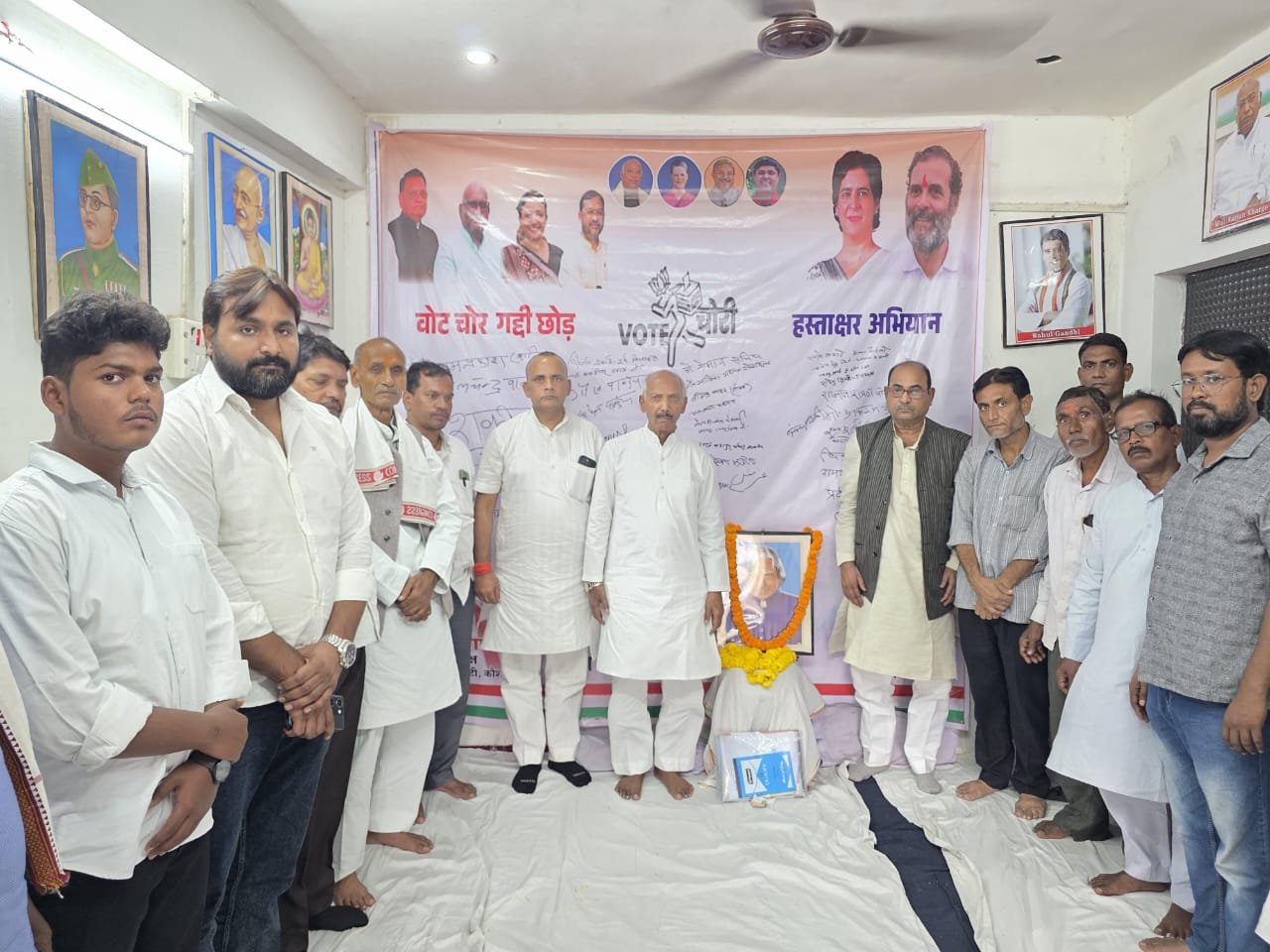 *कौशाम्बी: जिला कांग्रेस कार्यालय मंझनपुर में जिला कांग्रेस कमेटी कौशांबी की बैठक जिलाध्यक्ष गौरव पांडे की अध्यक्षता में बुधवार को संपन्न हुई जिसमें सर्वप्रथम पूर्व राष्ट्रपति ए पी जी अब्दुल कलाम की जयंती पर श्रद्धांजलि अर्पित की गई तथा उनकी जीवनी की पर परिचर्चा की गई बैठक की अध्यक्षता करते हुए जिला अध्यक्ष गौरव पांडे ने कहा कि डॉ ए पी जी अब्दुल कलाम को पूरा देश मिसाइल मैन के नाम से जानता है देश के विज्ञान क्षेत्र में उनका बहुत बड़ा योगदान था उन्होंने मिसाइल बनाकर देश की सीमाओं को मजबूत करने में अपना महत्वपूर्ण योगदान दिया था बैठक में उत्तर प्रदेश कांग्रेस कमेटी द्वारा प्रेषित कार्यक्रम वोट चोर गद्दी छोड़ के तहत हस्ताक्षर अभियान के फॉर्म जमा कराए गए और सभी पदाधिकारियों से फॉर्म भरवाकर जिला कांग्रेस कार्यालय में जमा कराए गए बैठक को संबोधित करते हुए जिला अध्यक्ष ने सभी पदाधिकारियों का आभार व्यक्त किया जिन्होंने हस्ताक्षर अभियान में चढ़ बढ़ कर हिस्सा लिया उनको प्रोत्साहित किया मुख्य अतिथि जोनल कॉर्डिनेटर पूर्व विधायक विजय प्रकाश ने कहा कि कौशांबी कांग्रेस बहुत ही मेहनत के साथ कांग्रेस की नीतियों का प्रचार प्रसार कर रहे हैं तथा कांग्रेस को मजबूत करने का काम कर रहे हैं बैठक को संबोधित करते हुए कौशांबी कांग्रेस के प्रभारी राजेश साहनी ने कहा कि आज जनता भाजपा के झूठ को जान चुकी चुकी है , आज मंहगाई चरम पर है सोना चांदी पेट्रोल डीजल गैस मंहगाई का रिकॉर्ड तोड़ चुकी हैं बेरोज़गारी आज तक से सबसे बड़े रिकॉर्ड को तोड़ दिया है आज जनता कांग्रेस की तरफ आशा भरी निगाहों से देख रही है बैठक में सैकड़ों कार्यकर्ता और पदाधिकारी मौजूद रहे।