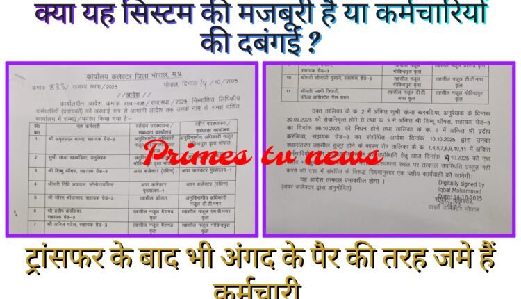 भोपाल । राजधानी के कलेक्टर कार्यालय से जारी आदेश अब मज़ाक बनते जा रहे हैं ये हम नहीं कागज कह रहे है । क्योंकि शासन की गरिमा और प्रशासनिक अनुशासन पर सवाल उठाते हुए एक बड़ा मामला सामने आया है, जिसमें कलेक्टर भोपाल के आदेशों को भी कर्मचारियों ने ठेंगा दिखा दिया है। कलेक्टर कार्यालय से जारी ताज़ा आदेश (क्रमांक 833 / राजस्व शाखा / 2025 दिनांक 14/10/2025) में साफ लिखा गया था कि जिन लिपिक कर्मचारियों और सहायक ग्रेड के अधिकारियों का स्थानांतरण किया गया है, उन्हें एक पक्षीय रूप से कार्यमुक्त कर नई पदस्थापना स्थल पर तत्काल उपस्थित होना अनिवार्य है, लेकिन भोपाल कलेक्टर के आदेश को भी कुछ कर्मचारियों ने कागज़ का टुकड़ा समझकर रद्दी में फेंक दिया। *जिला प्रशासन के भीतर चर्चा है कि ये वही प्रभावशाली कर्मचारी हैं जिनकी पहुँच ऊँचाई तक है, और शायद यही कारण है कि अपर कलेक्टर, संयुक्त कलेक्टर और स्वयं कलेक्टर भी इन पर अंकुश लगाने में असफल साबित हो रहे हैं। भोपाल जैसे राजधानी ज़िले में अगर कलेक्टर के आदेश भी हवा हवाई बन जाएँ, तो छोटे जिलों में शासन की स्थिति का अंदाज़ा लगाया जा सकता है।*