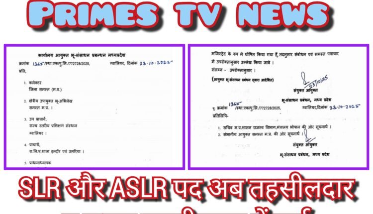 भोपाल। राज्य शासन ने राजस्व विभाग के प्रशासनिक ढांचे में महत्वपूर्ण परिवर्तन करते हुए सहायक भू-अभिलेख अधिकारी (SLR) और उप सहायक भू-अभिलेख अधिकारी (ASLR) के पदों को क्रमशः तहसीलदार और नायब तहसीलदार के पदों में विलय करने का निर्णय लिया है। इस संबंध में शासन का आदेश 23 अक्टूबर 2025 को जारी कर दिया गया है।