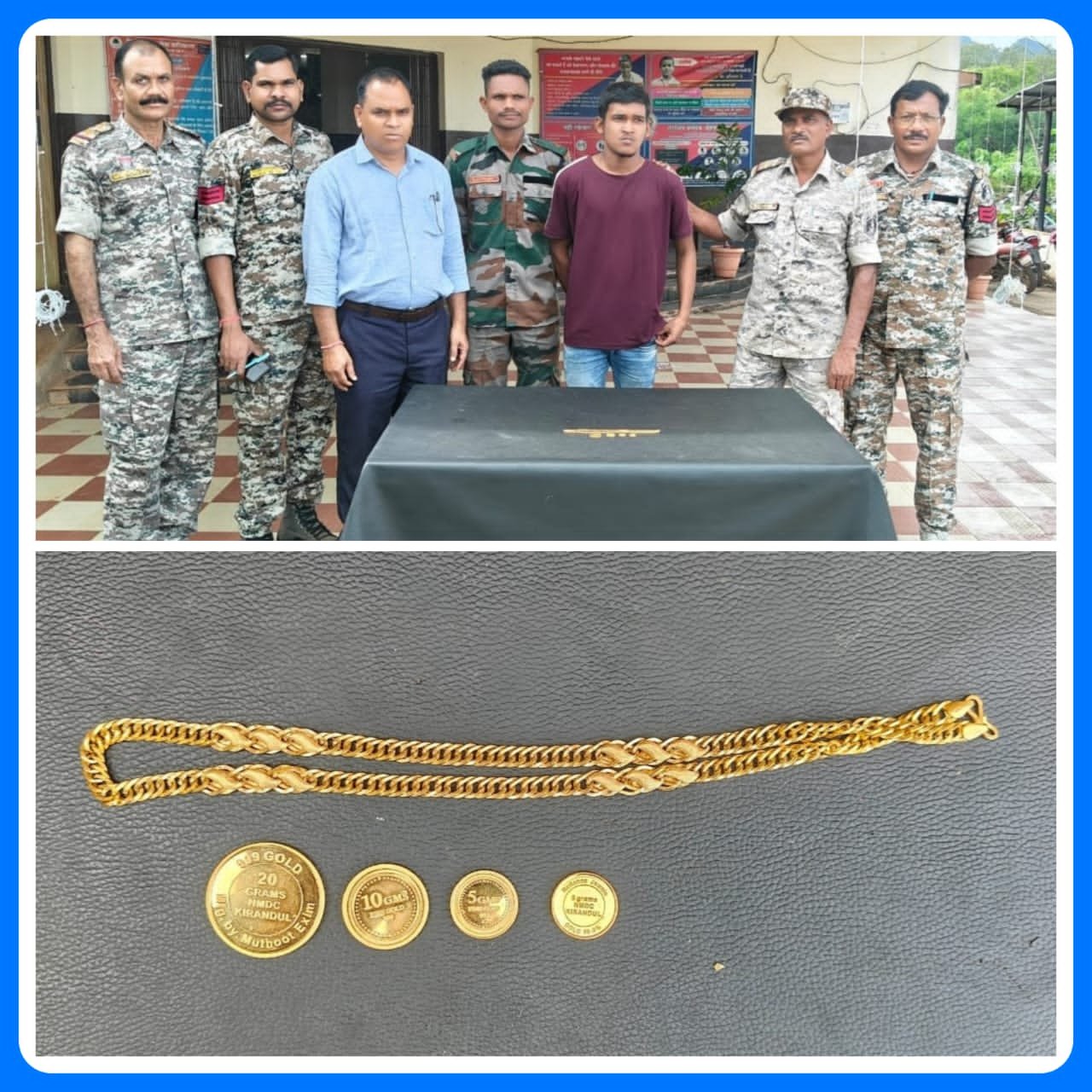 “04 नग सोने के सिक्के व एक सोने के चैन के साथ एक आरोपी गिरफ्तार”