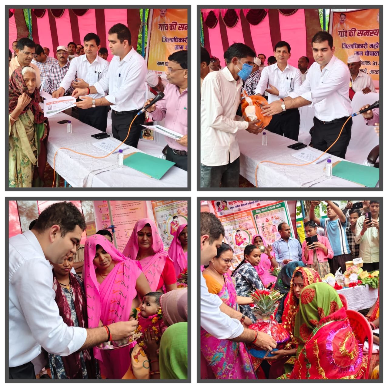 चौपाल के दौरान जिलाधिकारी ने आयुष्मान भारत योजना के पात्र लाभार्थियों को गोल्डन कार्ड वितरित किए और क्षय रोगियों को पोषण पोटली प्रदान की। इसके साथ ही उन्होंने महिलाओं की गोद भराई और बच्चों का अन्नप्राशन संस्कार भी कराया एक ऐसा पल जहाँ शासन की कठोरता और संवेदना का संगम दिखा। इस अवसर पर मुख्य विकास अधिकारी विनोद राम त्रिपाठी, मुख्य चिकित्साधिकारी डॉ. संजय कुमार सहित अन्य विभागीय अधिकारी मौजूद रहे।