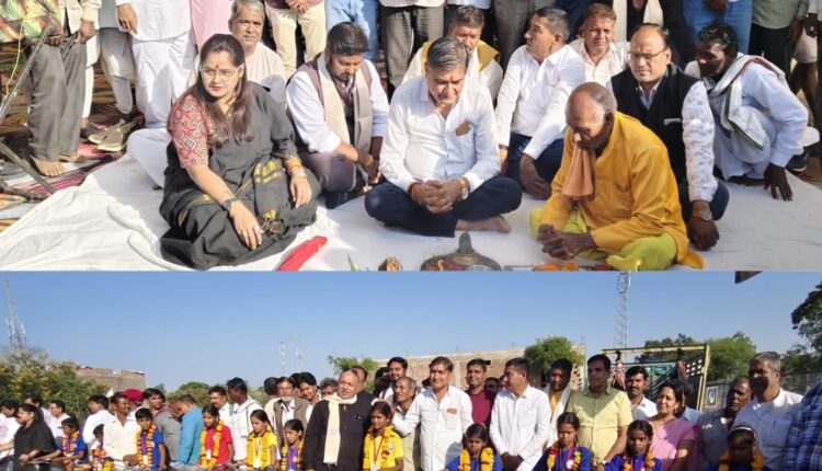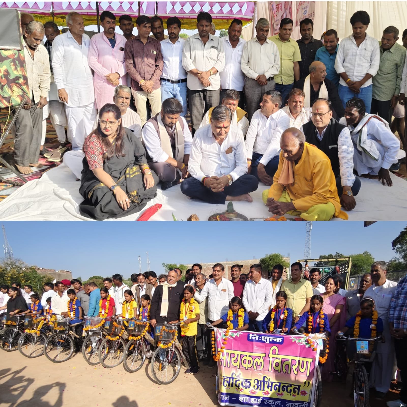 नवीन स्कूल निर्माण के भूमि पूजन एवं साईकिल वितरण कार्यक्रम का आयोजन ग्राम