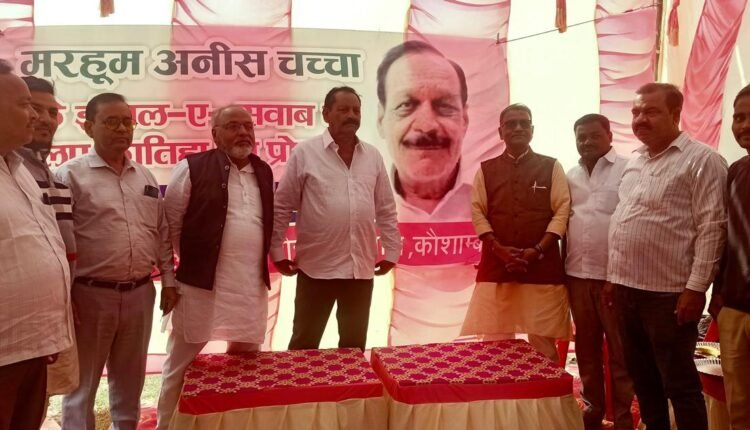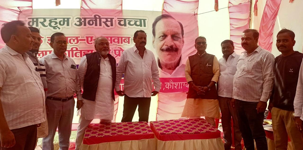 कौशाम्बी: सिराथू तहसील क्षेत्र के देवीगंज बाजार के भोला चौराहे पर रविवार को एक कार्यक्रम आयोजित कर समाजवादी पार्टी के वरिष्ठ नेता मरहूम अनीश चाचा को लोगों ने याद कर उनके चित्र पर श्रद्धा सुमन अर्पित किया है इस मौके पर मरहूम अनीश चाचा के ईसाल ए सवाब के लिए फातिहा का आयोजन किया गया इस मौके पर जनसत्ता दल पार्टी के राष्ट्रीय प्रधान महासचिव पूर्व सांसद शैलेंद्र कुमार मोहम्मद यासीन,अजीजुल भाई,डॉ पी के सिंह, लल्लू सिद्दीकी,पप्पू भाई आदि लोग मौजूद रहे|