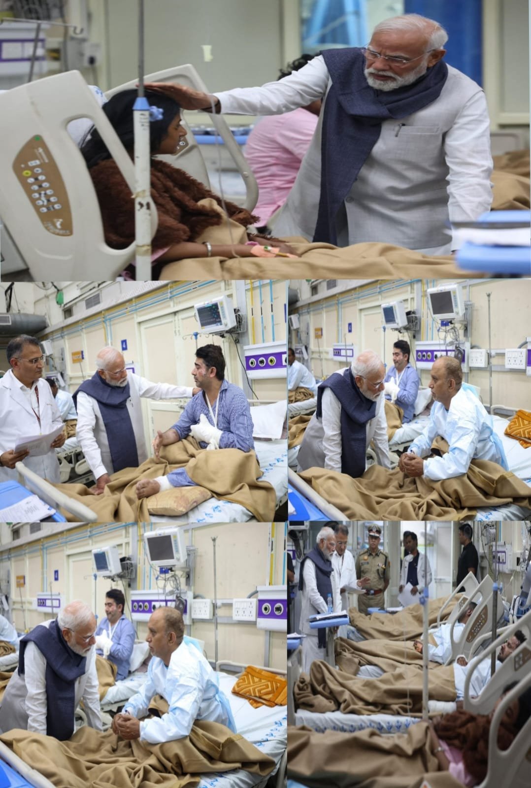 पीएम मोदी ने घायलों का हालचाल जाना और डॉक्टरों से उनके इलाज की जानकारी ली। प्रधानमंत्री ने अस्पताल प्रशासन को हर संभव सहायता और बेहतर इलाज सुनिश्चित करने के निर्देश दिए।