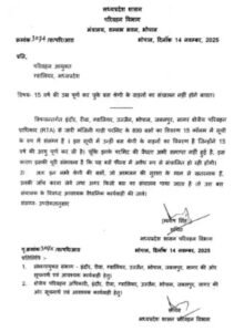 परिवहन विभाग के सचिव मनीष सिंह द्वारा हस्ताक्षरित आदेश में संभागायुक्तों और क्षेत्रीय परिवहन अधिकारियों को भी प्रतिलिपि भेजकर आवश्यक कार्रवाई सुनिश्चित करने को कहा गया है।