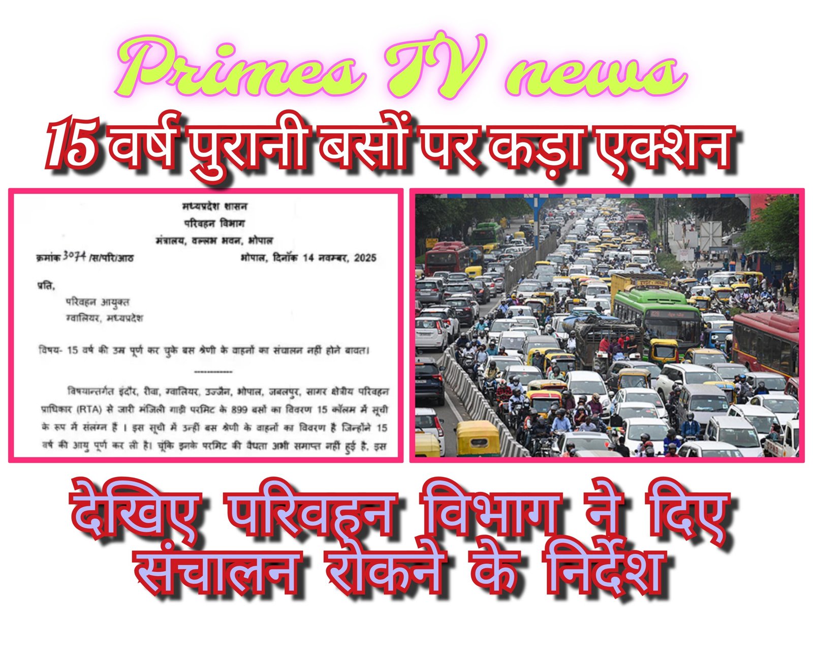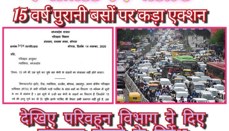 भोपाल, 14 नवम्बर 2025।मध्यप्रदेश परिवहन विभाग ने 15 वर्ष की आयु पूर्ण कर चुकी बसों के संचालन पर सख्त रुख अपनाते हुए तत्काल प्रभाव से कार्रवाई के निर्देश जारी किए हैं। विभाग की ओर से परिवहन आयुक्त, ग्वालियर को भेजे गए पत्र में स्पष्ट कहा गया है कि राज्य के विभिन्न क्षेत्रीय परिवहन प्राधिकार (RTA) — इंदौर, रीवा, ग्वालियर, उज्जैन, भोपाल, जबलपुर और सागर — द्वारा जारी मंज़िली गाड़ी परमिट वाली 899 बसें 15 वर्ष की निर्धारित सीमा पार कर चुकी हैं।