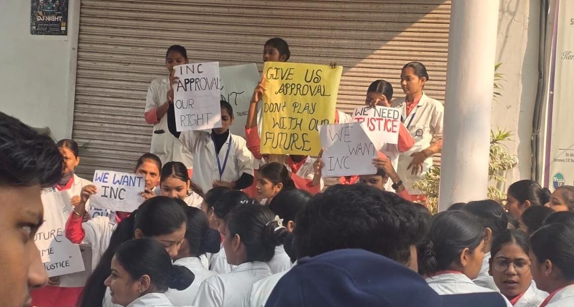 वहीँ धरने पर बैठी बीएससी नर्सिंग की छात्राओं ने बताया कि चार बैच में कॉलेज चलता है। जिसमें लगभग 200 छात्रों का एडमिशन हुआ है। प्रत्येक छात्राओं से एक सेमेस्टर का 1 लाख 20 हजार रुपए फीस के नाम पर लिया गया है। उन्होंने बड़े ही मुश्किल से कोर्स की फीस जमा की है। अब आखिरी सेमेस्टर के दौरान पता चला है कि कालेज की इंडियन नेशनल काउंसिल से मान्यता नहीं है। विरोध करने पर उन्हें कॉलेज प्रशासन के द्वारा धमकी दी जा रही है। ऐसे में अब वह कहां जाएंगे। उन्होंने कालेज पर फर्जी तरीके से एडमिशन लेने का भी आरोप लगाया है।