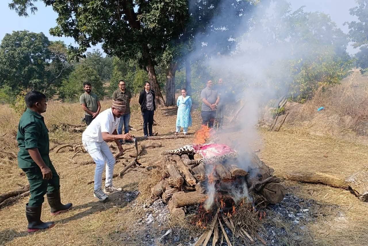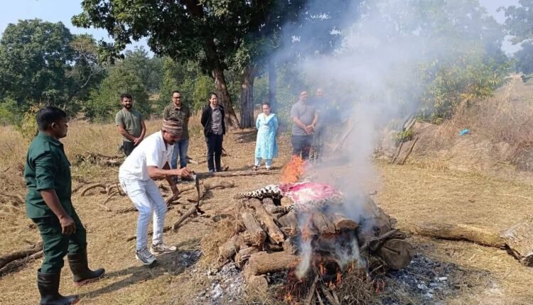 *वाहन की टक्कर से मृत मादा तेंदुए परीक्षण उपरांत निर्धारित मापदण्ड अनुरूप किया गया शवदाह*