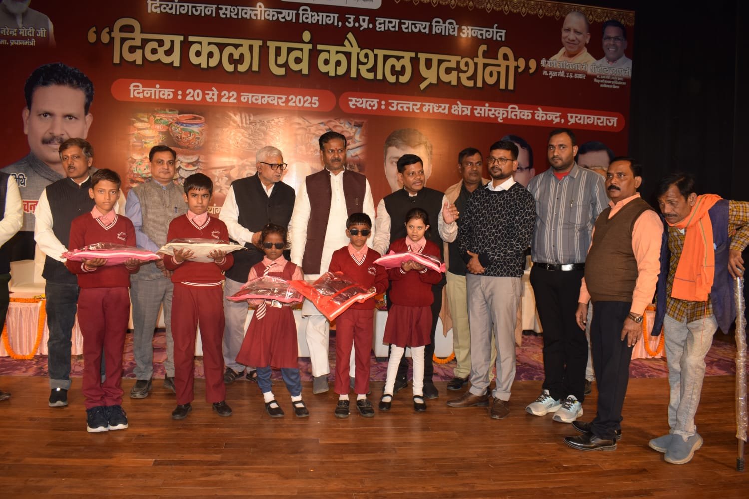प्रयागराज: दिव्यांगजन सशक्तीकरण विभाग एवं उत्तर प्रदेश मूक बधिर विद्यालय, प्रयागराज के सहयोग से उत्तर मध्य क्षेत्र सांस्कृतिक केन्द्र, प्रयागराज में आयोजित त्रिदिवसीय दिव्य कला एवं कौशल प्रदर्शनी के द्वितीय दिवस में मुख्य अतिथि के रूप में माननीय महापौर, श्री उमेश गणेश केशरवानी रहे। माननीय महापौर ने प्रदर्शनी के स्टालों का अवलोकन किया। महापौर जी द्वारा 50 दिव्यांग बालकों को श्रवण यंत्र एवं यूनिफार्म वितरित किया गया। मा० महापौर जी ने अपने उद्बोधन में कहा कि दिव्यांगजनों का मनोबल अत्यन्त सशक्त एवं मजबूत होता है।”