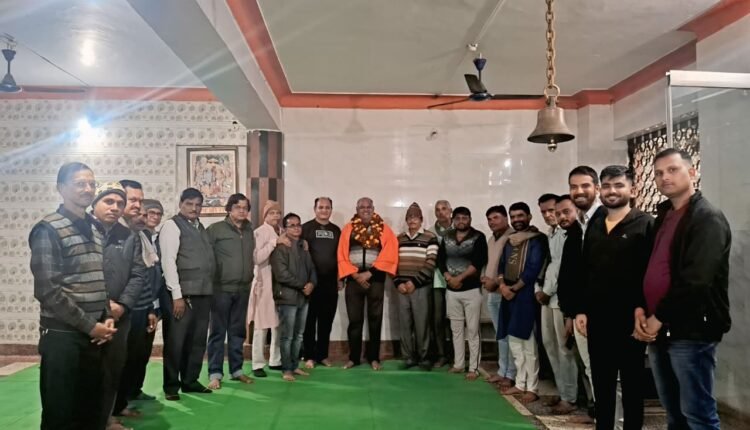 कार्यक्रम के अंत में समाज के वरिष्ठ एवं चिकित्सा क्षेत्र में अपना विशेष योगदान रखने वाले डॉक्टर विजय कुमार शर्मा , को मध्य प्रदेश शासन की जिला विकास समिति के सदस्य पद पर मनोनीत होने पर शाल एवं श्री फल से सम्मानित कर पुष्पहार से स्वागत किया गया ।