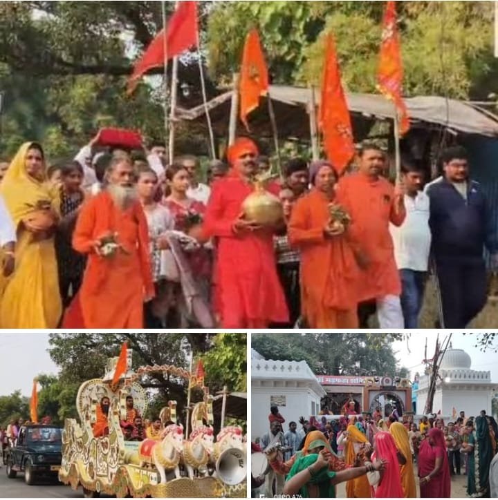 देवीभागवत महापुराण आयोजन सद्गुरु देव भगवान,स्वामी श्री आनंदनंद जी महाराज,व आशुतोष जी महाराज के असीम अनुकंपा से क्षेत्रीय जनों के सहयोग से त्यागी महाराज के नाम से विख्यात श्री रमेश चतुर्वेदी जी के सानिध्य में स्वामी श्री आनंदनंद जी महाराज की विशेष उपस्थिति में होने जा रहा है। जिसका शुभारंभ आज 26 नवंबर 2025 दिन बुधवार को भव्य प्रायश्चित जलयात्रा निकाल कर किया गया। यह यात्रा गाजे -बाजे व सुंदर सुशोभित रथ सजा निकाल नगर परिषद के क्षेत्र के देव स्थलों में पहुंच देवों को आमंत्रित करते हुए जलाशयों से जल एकत्रित कर कथा स्थल पर पहुंच , पंचांग पूजन, तथा मंडा प्रवेश के साथ शतचंडी महायज्ञ एवं संगीतमय श्रीमद् देवीभागवत महापुराण कथा का शंखनाद किया गया।