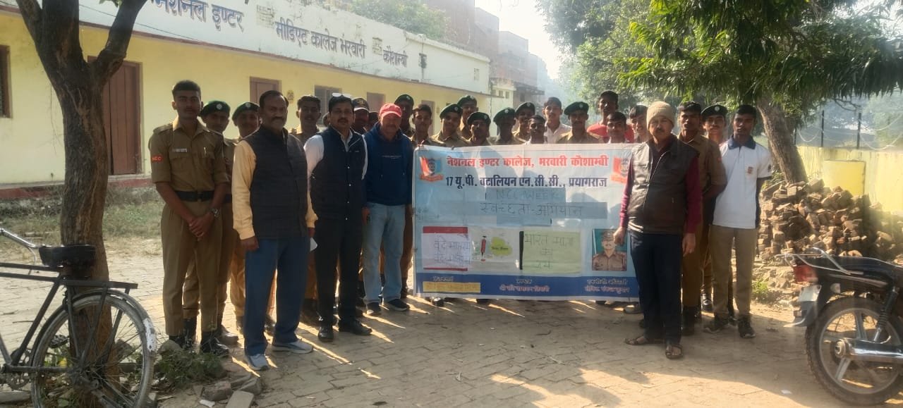 कौशाम्बी: नेशनल इंटर कॉलेज भरवारी में दिनांक 28 नवम्बर 2025 को एनसीसी सप्ताह के अंतर्गत एनसीसी कैडेट्स द्वारा स्वच्छता अभियान चलाया गया। कार्यक्रम की शुरुआत विद्यालय के प्रबंधक श्री रवि नारायण तिवारी जी ने स्वच्छता का संदेश देकर की।