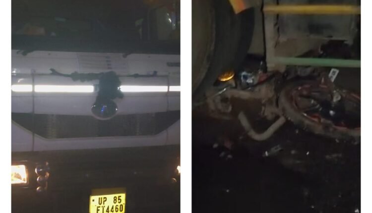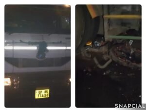खलघाट चौराहे पर टैंकर की टक्कर से बाइक सवार घायल.. मौके पर मची अफरा-तफरी… फंसा रहा बाइक चालक