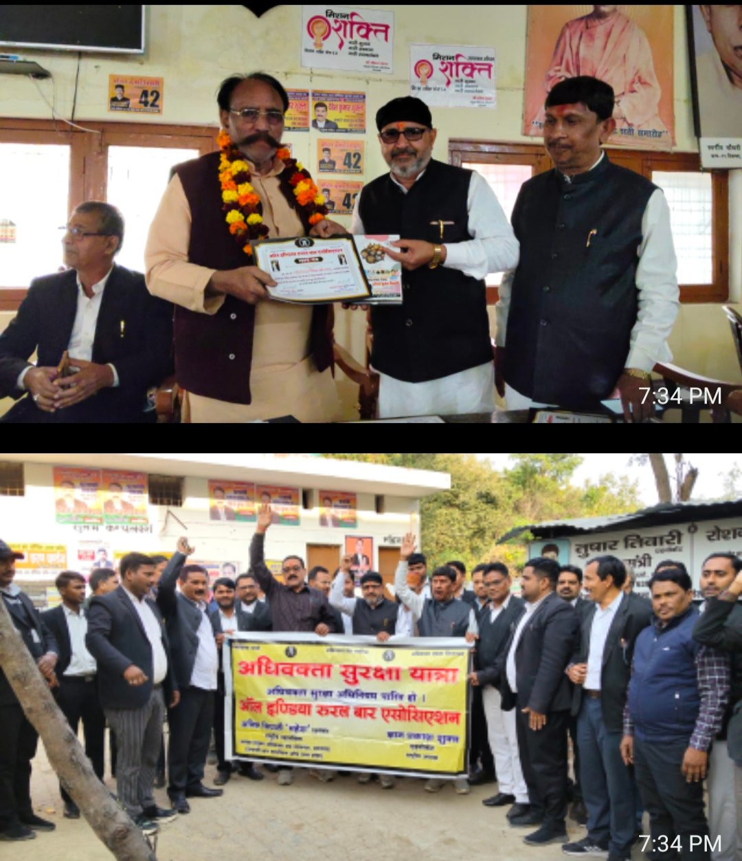 कौशाम्बी: संसद के शुरू हुए शीतकालीन सत्र में अधिवक्ता सुरक्षा विधेयक को पारित कराए जाने की मुहिम को लेकर मंगलवार को कौशाम्बी में वकीलों ने जमकर गर्जना की। आल इण्डिया रूरल बार एसोसिएसन के बैनरतले राष्ट्रीय अध्यक्ष ज्ञानप्रकाश शुक्ल एवं राष्ट्रीय महासचिव अनिल कुमार तिवारी महेश की संयुक्त अगुवाई में अधिवक्ता सुरक्षा यात्रा को लेकर वकीलों को काफी जोश में देखा गया। प्रदेशव्यापी अधिवक्ता सुरक्षा यात्रा लखनऊ से उन्नाव, कानपुर होते हुए दोपहर बाद यहां कौशाम्बी पहुंची। यहां मॉडल डिस्ट्रिक बार एसोसिएसन के लाइब्रेरी हॉल में वकीलों ने विधेयक के समर्थन में आमसभा किया। वहीं लाइब्रेरी हॉल के बाहर सैकडो वकीलों ने अधिनियम को लागू किये जाने की मांग को लेकर जमकर नारेबाजी भी की।