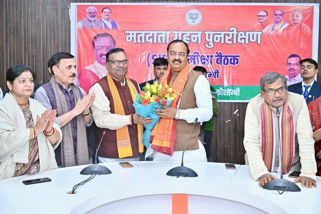 कौशाम्बी: उत्तर प्रदेश के उपमुख्यमंत्री केशव प्रसाद मौर्य,जिलाध्यक्ष धर्मराज मौर्य ने विशेष गहन पुनरीक्षण एस.आई.आर अभियान के निमित्त मां शीतला अतिथि ग्रह संयारा सर्किट हाउस में आयोजित जिला समीक्षा बैठक को संबोधित किया।